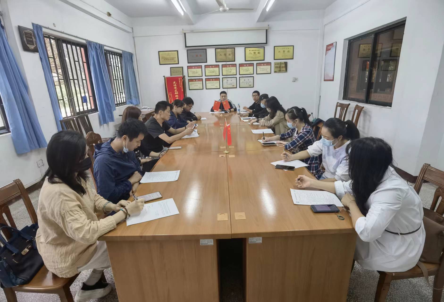 由卜繁波主任主持,详细讲解转达了近期学校安全工作例会的内容,尤其重点突出疫情防控、校园防火、防诈骗、用电安全等与师生息息相关的校园安全工作要求。