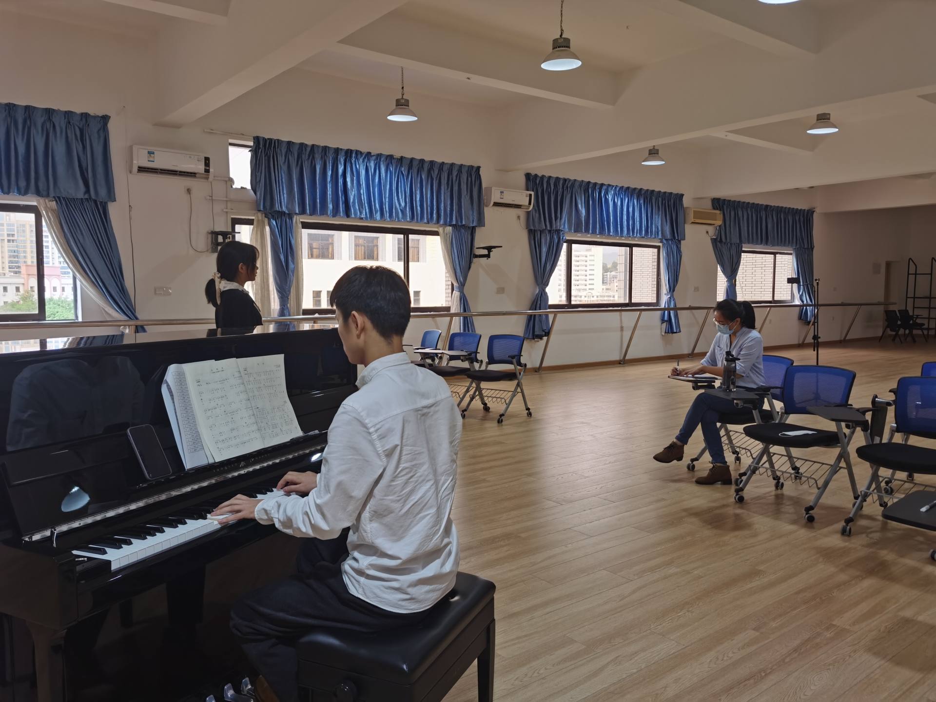 本次考试形式为现场专业技能展示,由老师进行现场打分。这种考试方式既有效检验了学生半个学期的学习成果,也让学生积累了宝贵的现场演奏、演唱经验。