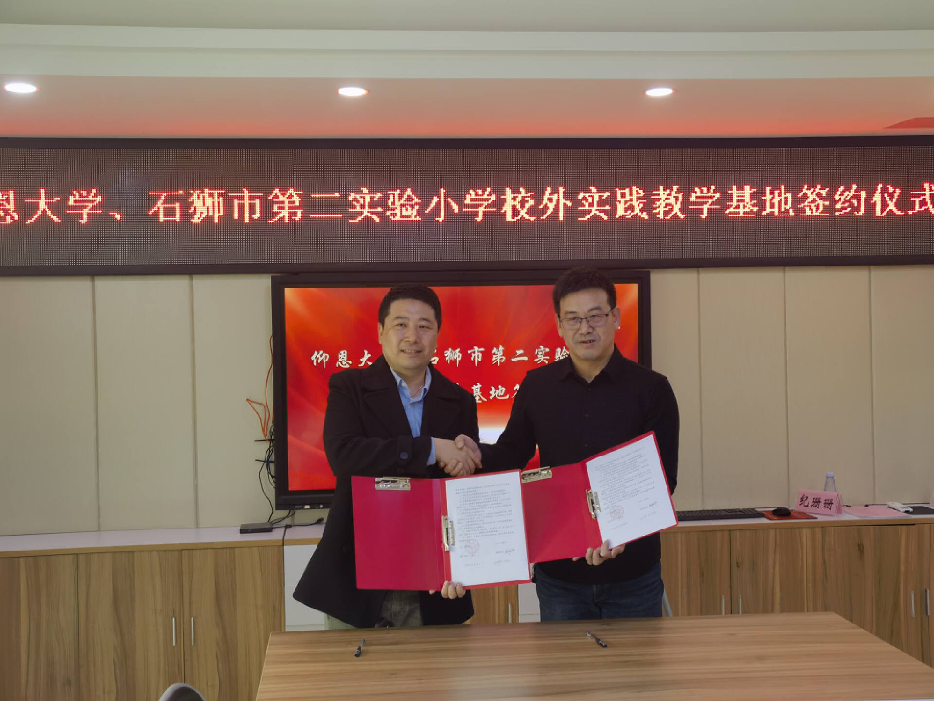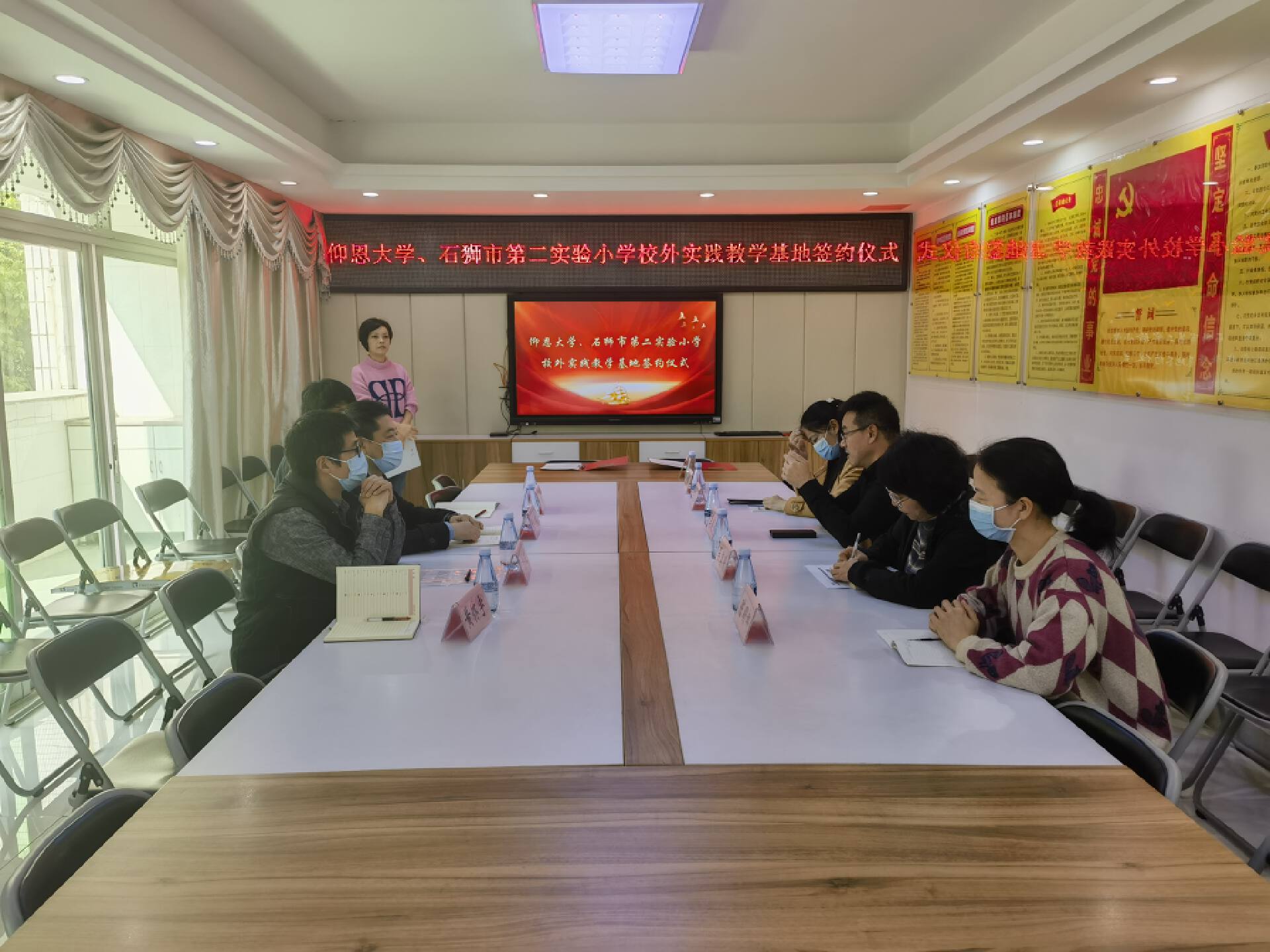 为扎实推进学生实习实践活动,2023年3月8日上午,YABO鸭脖官网艺术与教育学院、石狮市第二实验小学校外实践教学基地签约授牌仪式在石狮市第二实验小学党建室隆重举行。出席仪式的有YABO鸭脖官网张文院长、卜繁波副院长、艺术通识教育中心董钰主任、党支部宣传委员黄怀宇老师。石狮市第二实验小学校长吴毅超、支部书记吴美暖、副校长王玉琦、教务处主任陈明娜、办公室主任施聪玲、办公室副主任纪珊珊等。