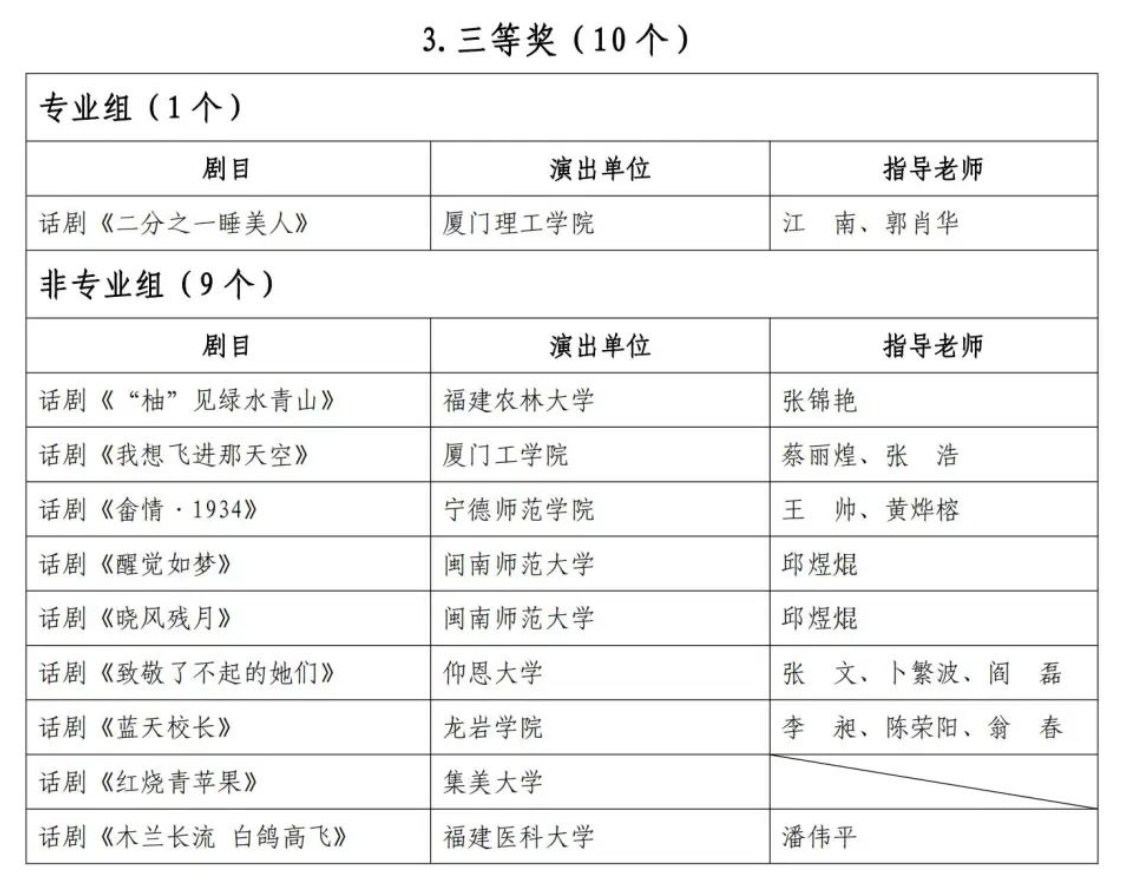 获奖名单
