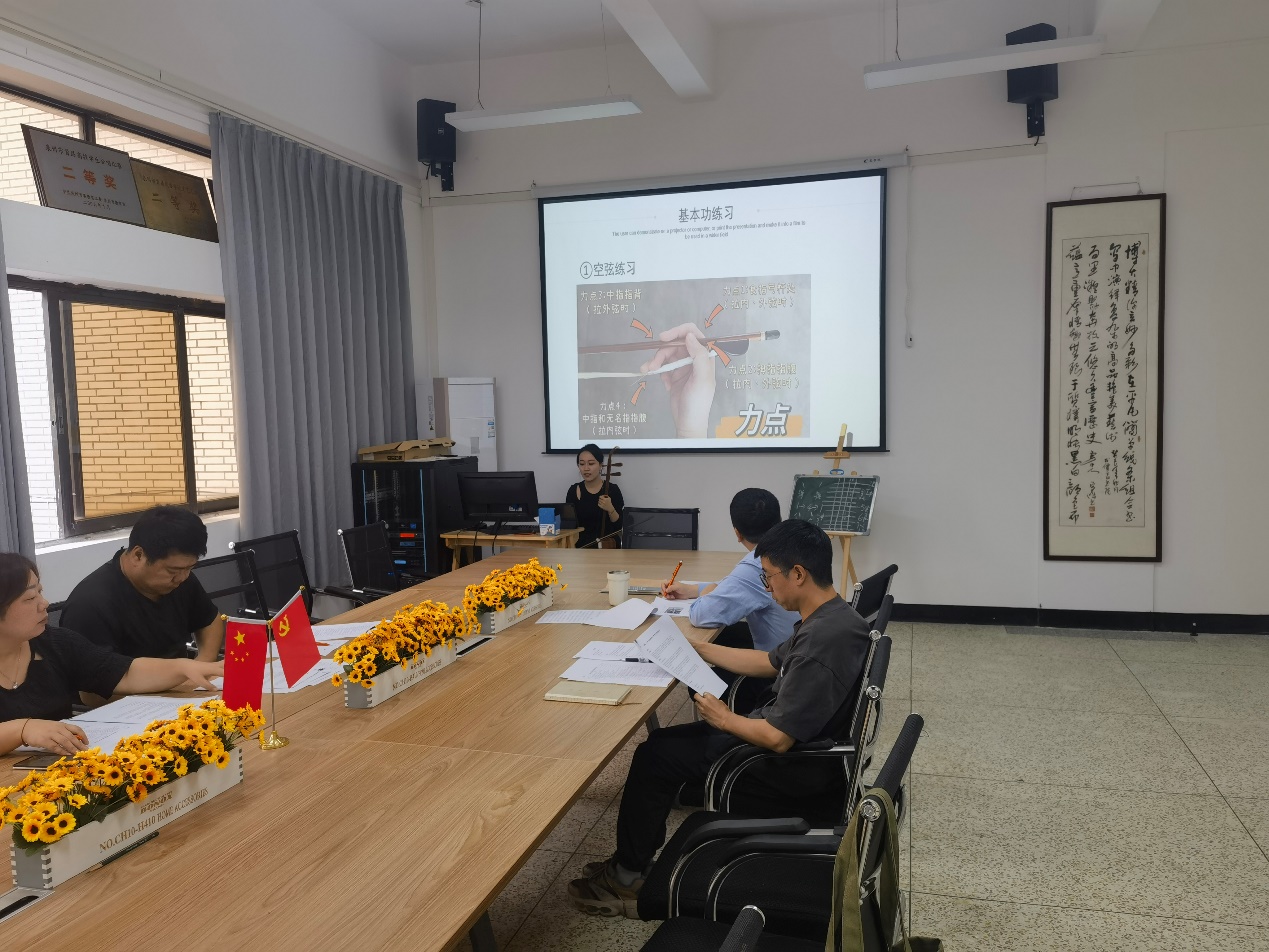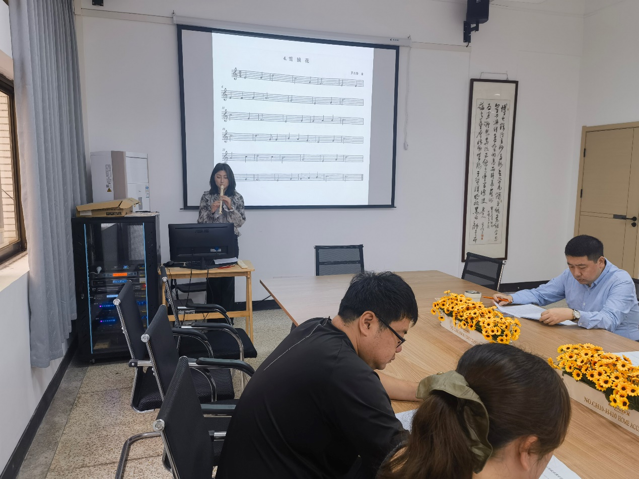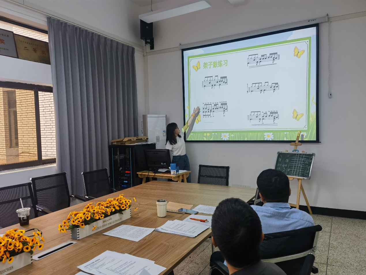 比赛涵盖教学设计、课堂教学与反思三大环节。参赛教师立足学科特色,呈现多元艺术课堂:官毅以书法课《〈勤礼碑〉包围结构的学习》诠释传统技法精髓;黄怀宇的竹笛课《我和我的祖国》与翁佳仪的二胡课《田园春色》展现民族音乐魅力;魏雅芳、郭亭序分别通过弹拨乐《茉莉花》和顺笛《雪绒花》教学,演绎经典曲目与技法融合;王嘉乐的美术课《用色彩表达情感》与于小童的打击乐《彩虹》课堂,以艺术激发情感表达;庄嘉亮、赵燕兴则围绕声乐共鸣、合唱指挥强化专业实践。