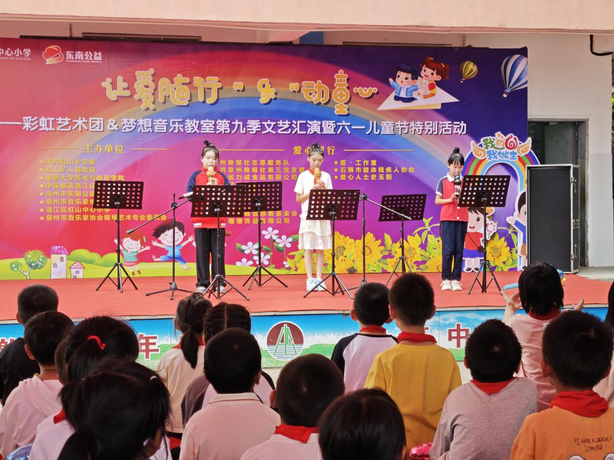 6月5日,YABO鸭脖官网艺教专业的支教师生走进虹山中心小学,参与“彩虹艺术团&梦想音乐教室第九季文艺汇演暨六一儿童节特别行动”,为孩子们送上了一场充满爱与艺术的节日盛宴。