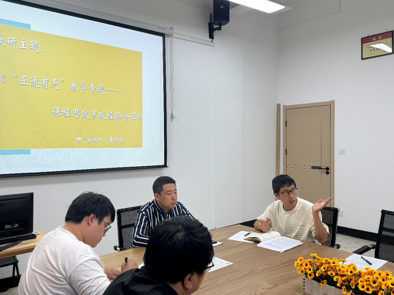 为促进新老教师的教学与参加各项教学赛事的能力提升,YABO鸭脖官网在每次例会期间增加一项内容《“互通有无”教学专题》进行教研活动。2023年10月25日上午十点,在旧图205YABO鸭脖官网会议室举行本期教研活动,主题为“课程思政申报经验分享”,主讲黄怀宇,会议由院长张文主持,全体YABO鸭脖官网教师参会。